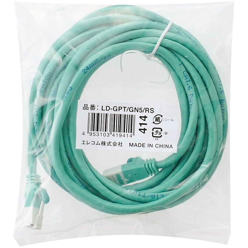 他の画像を見る ELECOM [LD-GPT/GN5/RS] RoHS指令準拠LANケーブル/CAT6/爪折れ防止/5m/グリーン/簡易パッケージ仕様 ¥ 1,061 税込 カートに入れる お気に入りに登録する