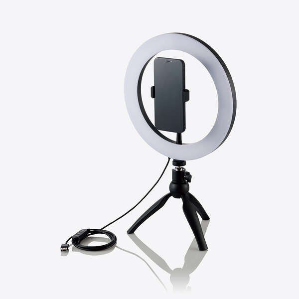 他の画像を見る ELECOM [DE-L02BK] LEDリングライト/16cm/ミニ三脚スタンド付き/3色モード/10段階調光/USB給電/ブラック ¥ 4,890 税込 カートに入れる お気に入りに登録する