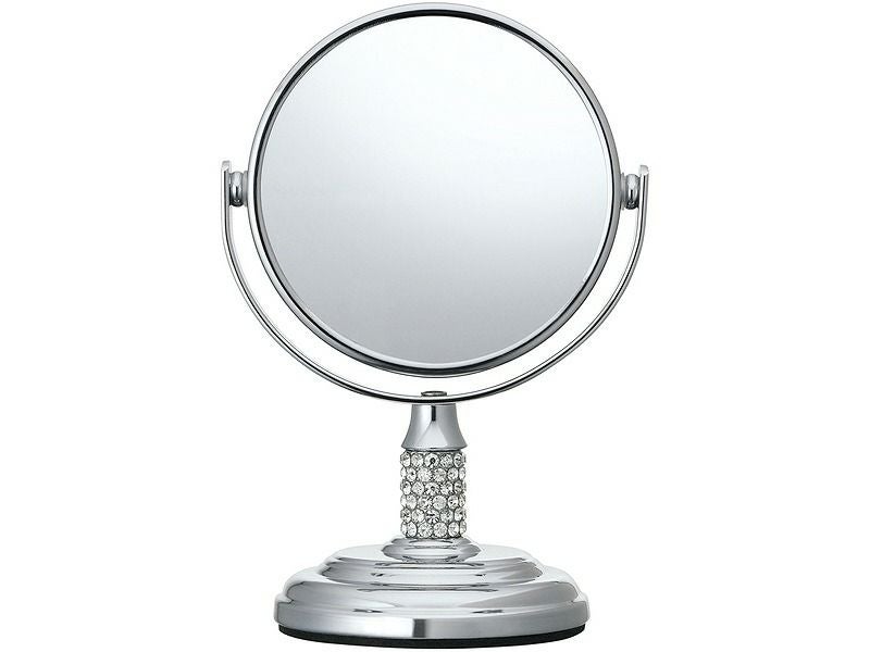 拡大率:1倍/5倍(裏表回転式)●鏡サイズφ75mm●卓上タイプ丸型●ラインストーン装飾