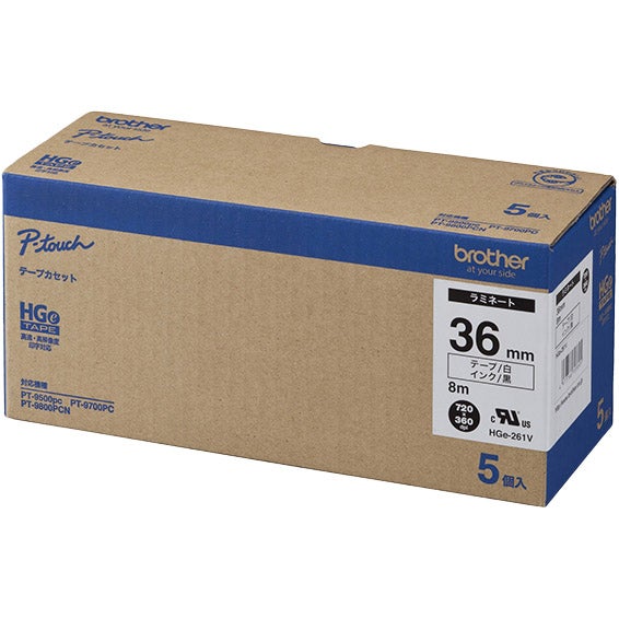 商品名:HGeテープ ラミネートテープ(白地/黒字)36mm 長さ8m 5本パック