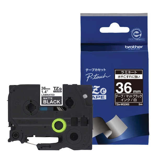 商品名:【ブラザー純正】ピータッチ ラミネートテープ TZe-MQ365 幅36mm(白文字/マットブラック)