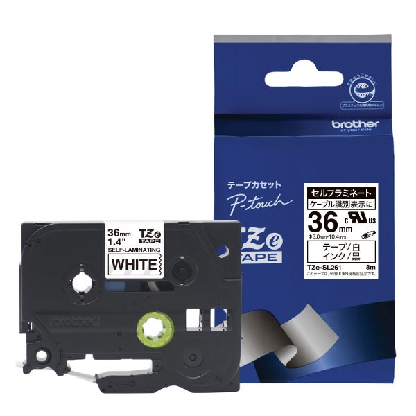商品名:【ブラザー純正】ピータッチ セルフラミネートテープ 幅36mm (黒文字/白) ケーブルマーキング