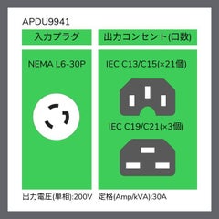 商品名:APC Rack PDU 9000 Switched、ZeroU、30A、200V、(21) C13/C15 & (3) C19/C21