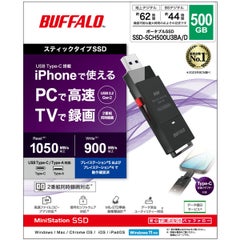 商品名:USB3.2(Gen2)対応 TV録画 スティックSSD 500GB ブラック USB Type-Cコネクタ付属