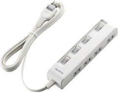 ■接続機器ごとにON/OFFでき、待機電力を個別に節約できる個別スイッチが付いた省エネタップです。 ■タップに差し込んだケーブルの重みでタップが傾いたりすることがなく、卓上での使用に最適な横挿しタイプです。 ■差込口には耐熱性に優れたユリア樹脂を使用していますので、万一の発熱の際にも融解しにくく、電気火災の防止に有効です。 ■ACアダプタや大きめのプラグを接続しても隣の差込口に干渉しにくいように、1個の差込口を離れて配置しています。 ■本体差込口形状:2ピン ■本体差込口個数:4個口 ■プラグ仕様:2ピン・スイングプラグ ■コード長:2m ■定格:125V・15A・1500W ■スイッチ:個別スイッチ ■絶縁キャップ付きプラグ:○ ■二重被ふく:○ ■スイングプラグ:○ ■カラー:ホワイト ■材質:本体:ABS樹脂、プラグ:PVC 差込口:ユリア樹脂 ■外形寸法:幅195mm×奥行45mm×高さ31.5mm ※コード部分及びプラグ部分を除く ■質量:330g ■使用可能地域:本製品は日本国内の電源を想定して設計されていますので、日本国外ではご使用いただけません。 ■電気用品安全法:PSE適合