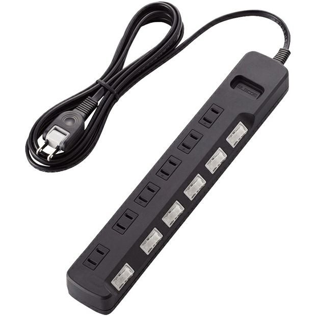 商品名:雷ガードタップ/個別スイッチ/6個口/2.5m/ブラック