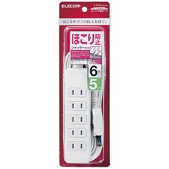 商品名:ほこりシャッター付き電源タップ/6個口/5m/ホワイト