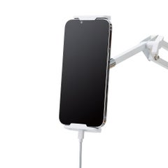 商品名:スマートフォン・タブレット用フレキシブルアームスタンド/Zアーム型/ヘッドボード取り付け可能/ホワイト