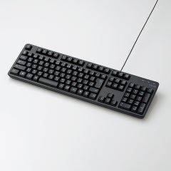 ■タイピングしやすい、JIS規格準拠の標準日本語配列のキーボードです。 ■大型のエンターキーや、独立して配置されたDeleteやInsertなどの特殊キーにより、誤入力しにくく快適なキータイピングが行えます。 ■電池が不要で、PCに挿すだけですぐに使用することができる有線接続タイプです。 ■長さ1.5mのケーブルを採用しており、デスクトップPCなどでも余裕のある配線が可能です。 ■インターフェース:USB ■コネクター形状:USB(A)オス ■対応機種:USBポートを装備したWindows搭載機 ■対応OS(Windows):Windows 11/10/8.1/7/XP ■対応OS 備考:※各OSの最新バージョンへのアップデートや、サービスパックのインストールが必要になる場合があります。 ■カラー:ブラック ■キータイプ:メンブレン ■キー配列:109キー(日本語配列) ■キーピッチ:19.0mm ■キーストローク:3.5mm ■電源方式:USBバスパワー ■ケーブル長:1.5m ■外形寸法:幅447.7mm×奥行136.0mm×高さ31.6mm(スタンド含まず)、幅447.7mm×奥行136.0mm×高さ40.1mm(スタンド時) ※ケーブル除く ■サイズ分類:フルサイズ ■質量:約574g ※ケーブル含む ■VCCI Class B:○ ■保証期間:6カ月間