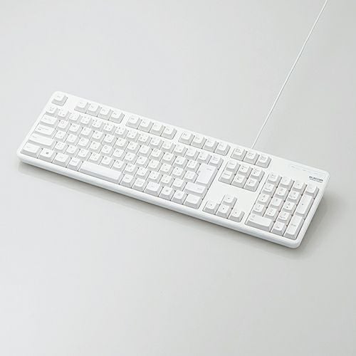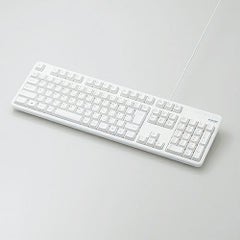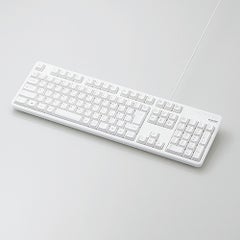 ■タイピングしやすい、JIS規格準拠の標準日本語配列のキーボードです。 ■大型のエンターキーや、独立して配置されたDeleteやInsertなどの特殊キーにより、誤入力しにくく快適なキータイピングが行えます。 ■電池が不要で、PCに挿すだけですぐに使用することができる有線接続タイプです。 ■長さ1.5mのケーブルを採用しており、デスクトップPCなどでも余裕のある配線が可能です。 ■インターフェース:USB ■コネクター形状:USB(A)オス ■対応機種:USBポートを装備したWindows搭載機 ■対応OS(Windows):Windows 11/10/8.1/7/XP ■対応OS 備考:※各OSの最新バージョンへのアップデートや、サービスパックのインストールが必要になる場合があります。 ■カラー:ホワイト ■キータイプ:メンブレン ■キー配列:109キー(日本語配列) ■キーピッチ:19.0mm ■キーストローク:3.5mm ■電源方式:USBバスパワー ■ケーブル長:1.5m ■外形寸法:幅447.7mm×奥行136.0mm×高さ31.6mm(スタンド含まず)、幅447.7mm×奥行136.0mm×高さ40.1mm(スタンド時) ※ケーブル除く ■サイズ分類:フルサイズ ■質量:約574g ※ケーブル含む ■VCCI Class B:○ ■保証期間:6カ月間