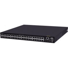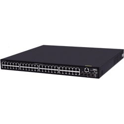 豊富なレイヤ2機能と基本的なレイヤ3機能を備え、IRFスタック、10GbEアップリンク(SFP+)標準装備の「1GbE高機能・ベーシックレイヤ3 PoE+スイッチ」。装置前面に10/100/1000Base-Tを48ポート、SFP+(10GbE)を4ポート標準装備。トリプル認証、SDNコントローラ連携(Network Operation Engine連携)、VRF-Lite、ループ検出、IRFスタック、IEEE802.3az
