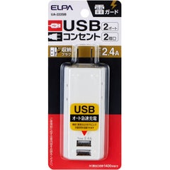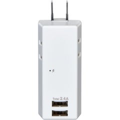 ●スマートフォンを2台同時充電可能!(USBポート) ●iPhone、iPad、Androidスマートフォン/タブレットを充電可能です。 ●接続された機器(iPhone、iPad、Android等)に対し、最適な出力を自動識別し、急速充電する自動識別機能 ●過電流保護機能で過電流等の異常発生時は出力が自動遮断され、安心です。 ●2ポート合計2.4Aまで ●雷から接続機器を守る耐雷サージ機能付 ●耐トラッキングカバーでトラッキング火災を予防します。 ●雷ガード表示LED付 ●収納プラグ