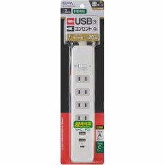 ELPA [WLS-4322SUC(W)] コード付USBタップPD20W