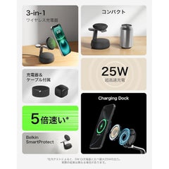 belkin [WIZ040dqCH] UltraCharge Pro Qi2 25W 3-in-1 マグネット式充電ドック チャコール