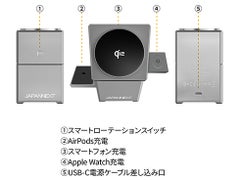スマートフォン・AirPods・Apple Watch 全てを同時に充電可能な3-in-1チャージャーです。置くだけで3台をまとめて充電できます。3-in-1チャージャーメインのスマートフォンは最大15W、サイドではAirPodsとApple Watchを各2.5Wで充電が可能。Qi2規格に対応。マグネットでスマートフォンを固定でき、従来のQiに比べてズレや発熱を抑え安定したワイヤレス充電を実現します。・スマートローテーション搭載スマートローテーション機能搭載で、本体上部がワンタッチで回転。マグネットで固定されたスマートフォンを、横置きから斜め置きに切り替えられます。・便利な3つのモードを搭載(1)コンパクトスタイル:持ち運びやすい省スペース設計。マグネット非対応の機種でも、置くだけでワイヤレス充電が可能です。(2)ディスプレイスタイル:マグネット対応のスマートフォンを自分の方へベストアングルで向けられるため、常時表示ディスプレイをいつでも見やすく活用できます。スマートフォンを横向きにも固定できるため、動画視聴やオンライン会議も快適です。(3)フルアクティブスタイル:スマートフォン・AirPods・Apple Watch 全てを同時に充電が可能。本製品には、2年間のメーカー保証が付きます。