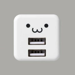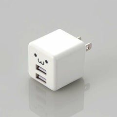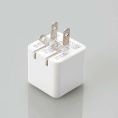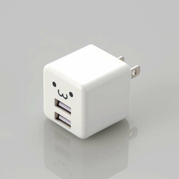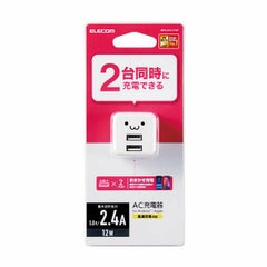 商品名:AC充電器/スマホ・タブレット用/2.4A出力/USB-Aメス2ポート/おまかせ充電搭載/キューブ型/ホワイトフェイス