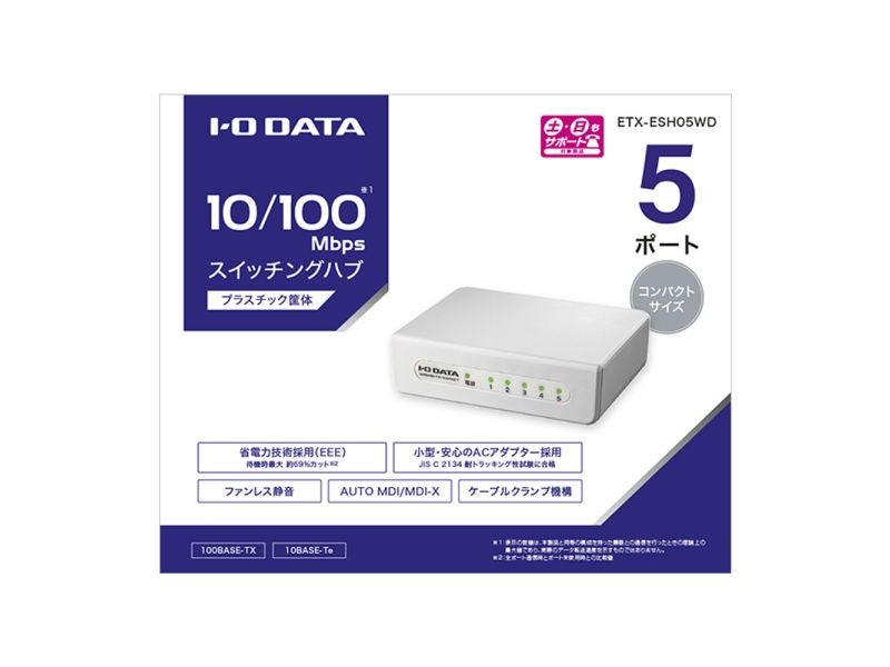 他の画像を見る IODATA [ETX-ESH05WD] 100BASE-TX/10BASE-Te対応 5ポート レイヤー2スイッチングハブ ホワイト ¥ 2,227 税込 カートに入れる お気に入りに登録する
