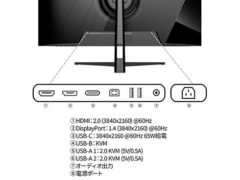 他の画像を見る JAPANNEXT [JN-IPSB315U-HSPC6] 液晶ディスプレイ 31.5型/3840×2160/HDMI×1、DP×1、USB-C×1/ブラック/スピーカー有/2年保証 ¥ 49,071 税込 カートに入れる お気に入りに登録する
