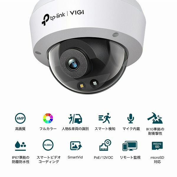 他の画像を見る TP-LINK [VIGI C240(2.8mm)(UN)] VIGI 4MPドーム型フルカラーネットワークカメラ(2.8mm) ¥ 20,987 税込 カートに入れる お気に入りに登録する